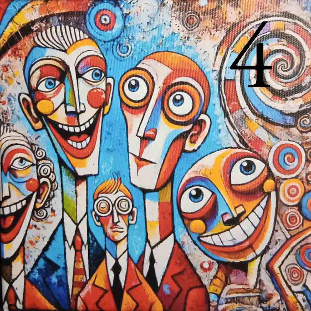 In farbenstarken Kompositionen verschmelzen geometrische Formen und menschliche Figuren zu einem faszinierenden Spiel aus Nähe und Distanz.